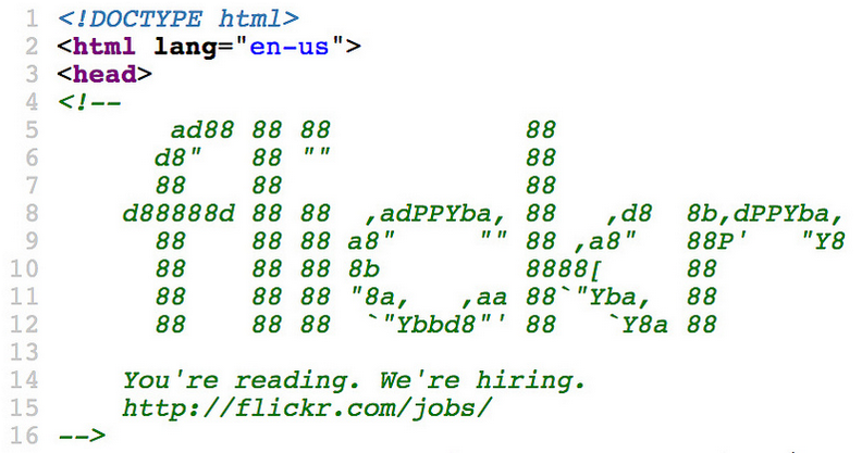 A może coś nietypowego? Ogłoszenie pewnej firmy IT z siedzibą na Górnym Śląsku, która napisała je… śląską gwarą zdobyło sporą popularność w grupie docelowej. Z kolei serwis Flickr informację o rekrutacji zamieścił w… kodzie swojej strony! Pomysłodawca takiego rozwiązania wyszedł z założenia, że każdy programista/web developer, który trafi na dobrą stronę, sprawdza jej kod źródłowy. Dlatego to tam pojawiła się wiadomość „You’re reading. We’re hiring”. To zdecydowanie oferta, mówiąca językiem kandydata. Zobacz też ofertę pracy dla programisty od portalu Nasza Klasa.