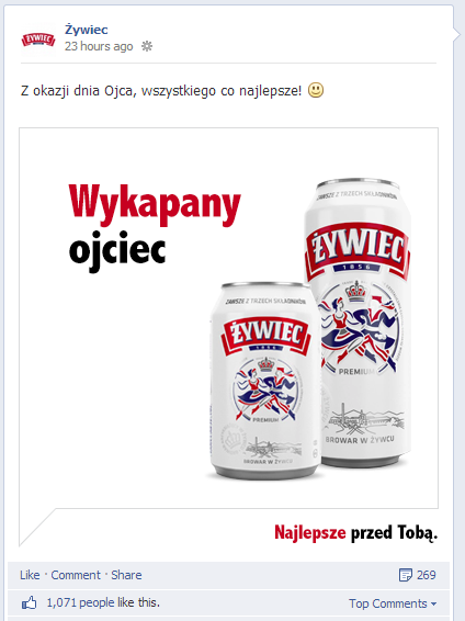 W tym roku Dzień Ojca przypadł w niedziele. Może właśnie to spowodowało, że sporo marek w ogóle nie przygotowało wpisów z tej okazji (m.in. Durex, którego poniższa, klasyczna już kreacja, pojawiła się na wielu branżowych fanpage’ach).