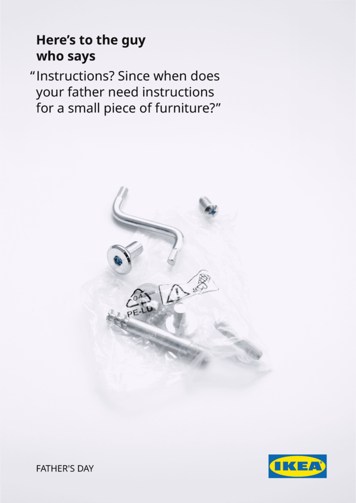 Tak brzmi instrukcja, według której ojcowie powinni, zdaniem IKEA, składać zakupione w sklepie meble. W ten humorystyczny sposób sieć chce zwrócić uwagę na to, jak w wielu przypadkach wygląda urządzanie mieszkania. Niby wszystkie wskazówki można znaleźć w instrukcji, ale przecież… tata wie (naj)lepiej.