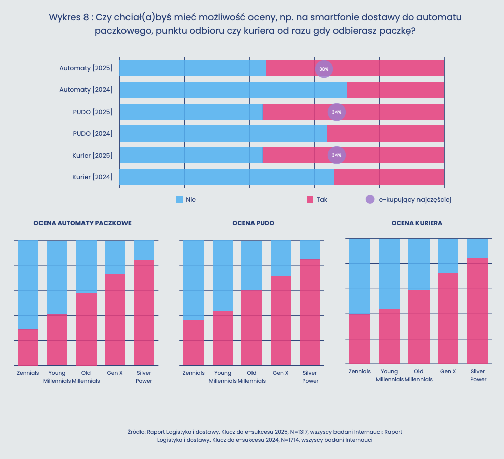 – Dostawa stała się jednym z najważniejszych elementów doświadczenia zakupowego w e-commerce. Polacy oczekują dziś nie tylko szybkości, ale także wygody, elastyczności i transparentności procesu. Co istotne, coraz częściej zwracają uwagę na aspekt ekologiczny, chcąc, by zielone dostawy i opakowania były standardem, a nie dodatkiem. To wyzwanie i szansa dla całej branży – operatorzy logistyczni i sprzedawcy inwestują w automatyzację, technologie śledzenia i zielone rozwiązania, dzięki czemu poziom satysfakcji z dostaw w Polsce systematycznie rośnie – komentuje Patrycja Sass-Staniszewska, Prezes Izby Gospodarki Elektronicznej.