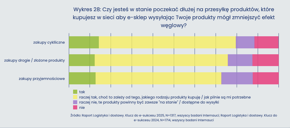 - Aż 79% badanych jest gotowych zaakceptować dłuższy czas dostawy, jeśli pozwala to ograniczyć ślad węglowy,