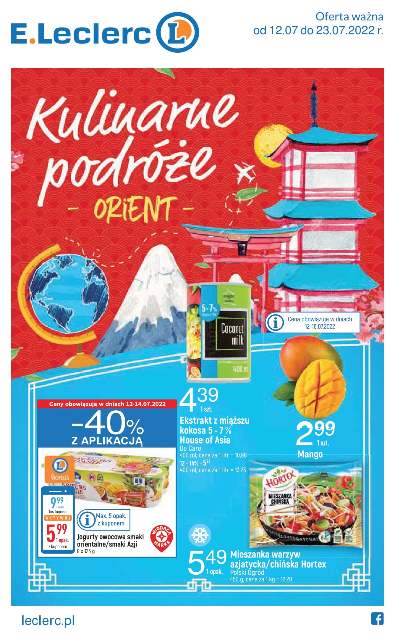 Na potrzeby kampanii E.Leclerc przygotował cykl trzech katalogów, w których zostały zaprezentowane grupy produktów z różnych krajów. Motywem przewodnim gazetek jest hasło „Kulinarne podróże”, nawiązujące do najpopularniejszych kuchni świata. Wielbiciele wschodnich smaków będą mogli kupić np. makaron sojowy, ekstrakt z miąższu kokosa czy ryż jaśminowy. Miłośnicy kuchni włoskiej – ser gorgonzola, makaron tagliatelle czy deser Tiramisu.