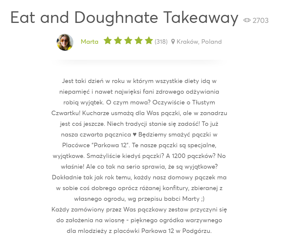 Portal Eataway, propagujący ideę wspólnych posiłków wraz z sąsiadami czy lokalsami, wpadł na pomysł połączenia tradycji wraz ze szczytnym celem. Z okazji tegorocznego Tłustego Czwartku kucharze serwisu usmażyli 1200 pączków, z których cały dochód zostanie przekazany na budowę ogródka warzywnego dla młodzieży z placówki Parkowa 12 w Krakowie.