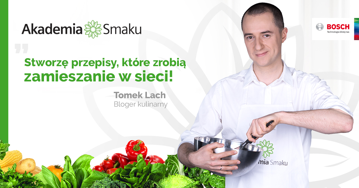 Tomasza Lacha – blogera kulinarnego, autora Zajadam.pl, publikującego najlepsze przepisy w sieci. Jego znakiem rozpoznawczym są sezonowe produkty i nieustanne poszukiwania nowych wariacji smakowych.