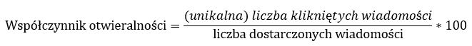 Podobnie jak w przypadku współczynnika otwieralności sugeruję brać pod uwagę unikalne kliknięcia i liczbę dostarczonych wiadomości.