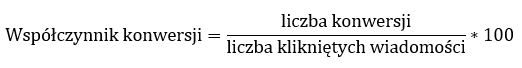 Informuje, ile osób, które otworzyły wiadomość i kliknęły w nią, dokonało pożądaną przez nas akcję – czyli w jakim stopniu newsletter spełnił swoje zadanie, a cel został osiągnięty. Celem tym może być np. dokonanie zakupu, rejestracja czy pobranie ebooka.