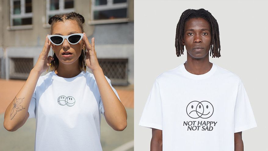 Wspomniana grafika przedstawia dwie symbolicznie zarysowane twarze, które są połączone ze sobą falującą linią – na jednej z nich fala przechodzi w uśmiech, na drugiej w smutną minkę. Internauci szybko zauważyli, że podobną grafikę od jakiegoś czasu można zobaczyć na t-shirtach znanej marki Vetements. Jedyna różnica polega na samej stylistyce (u Vetements bardziej uproszczona, u Ekipy widać np. cieniowanie) i w przypadku produktu YouTuberów na braku towarzyszącego napisu („Not happy not sad”).