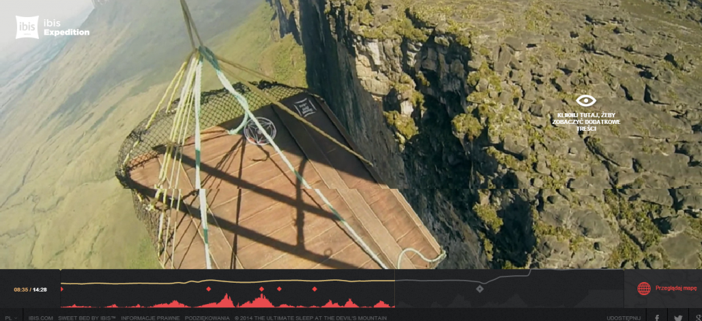 Marka przekonała poszukiwacza przygód, Aarona Chervenaka, aby podjął się niezwykłego wyzwania spędzenia nocy na szczycie Diabelskiej Góry, w sercu amazońskiej dżungli. Ibis zaprasza użytkowników Internetu, aby obejrzeli wyprawę, która zaprowadziła Aarona i Sweet Bed by ibisTM do najwyższego punktu na tej niedostępnej górze, poprzez wciągającą platformę internetową, zaprojektowaną i zbudowaną przez agencję BETC.