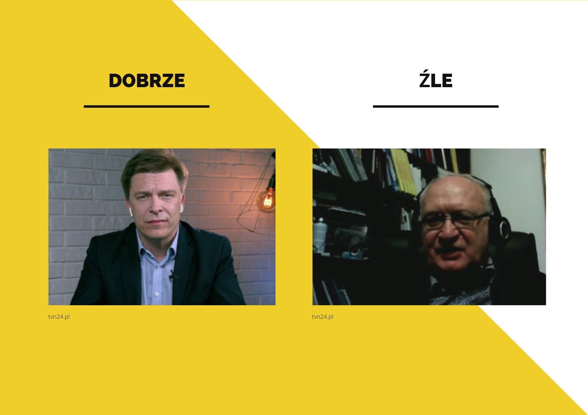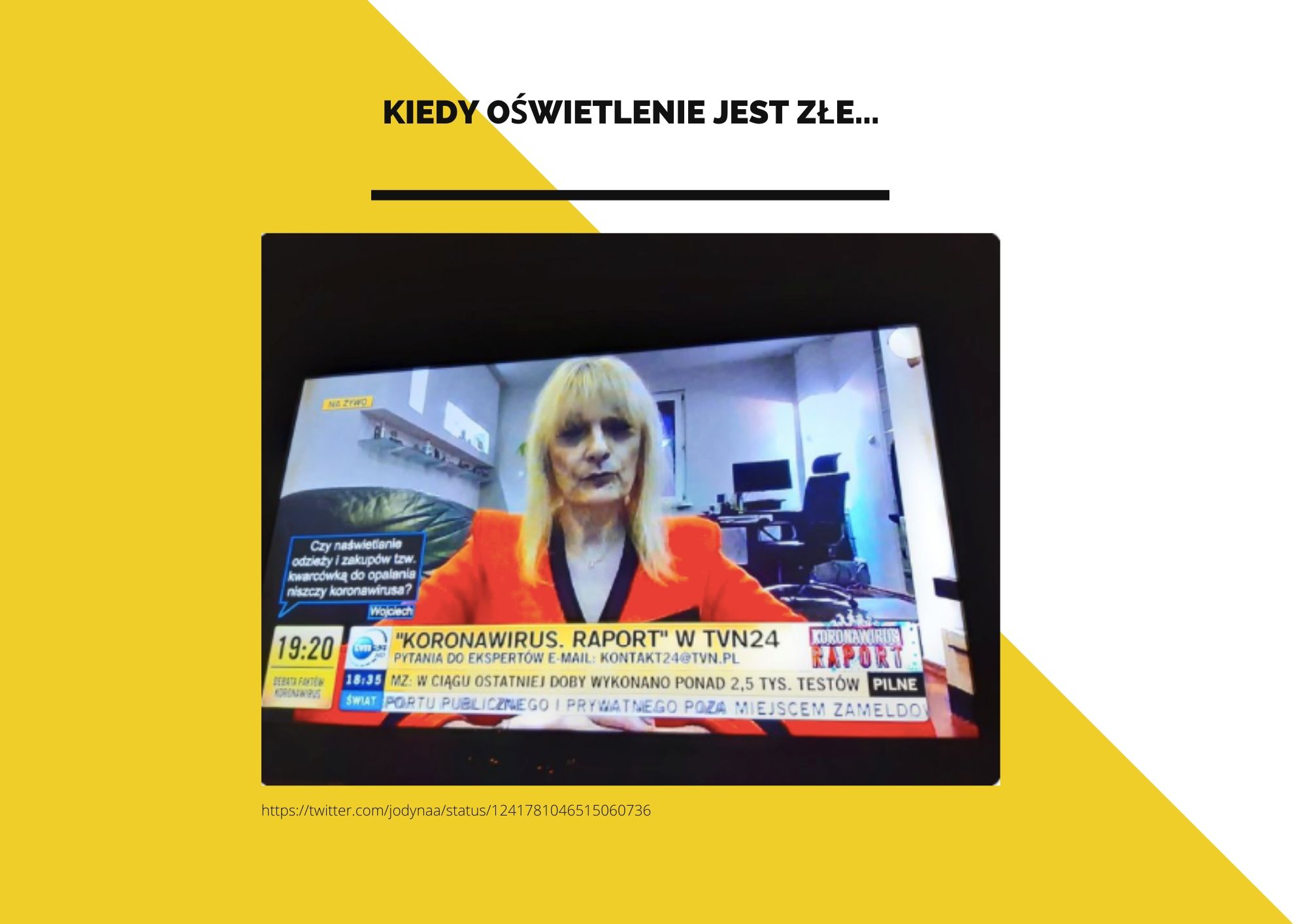 Oświetlenie w telewizji to bardzo ważny aspekt, który powoduje, że wyglądamy o wiele korzystniej. Nie każdy oczywiście ma możliwość, aby zbudować w swoich czterech kątach małe studio telewizyjne, ale jeżeli zamierzamy występować częściej w środkach masowego przekazu, rekomendujemy zakupienie lampy pierścieniowej lub dwóch softboxów, które doświetlą plan. Jak brak takiego oświetlenia może wpłynąć na rozmowę? Można zobaczyć poniżej.