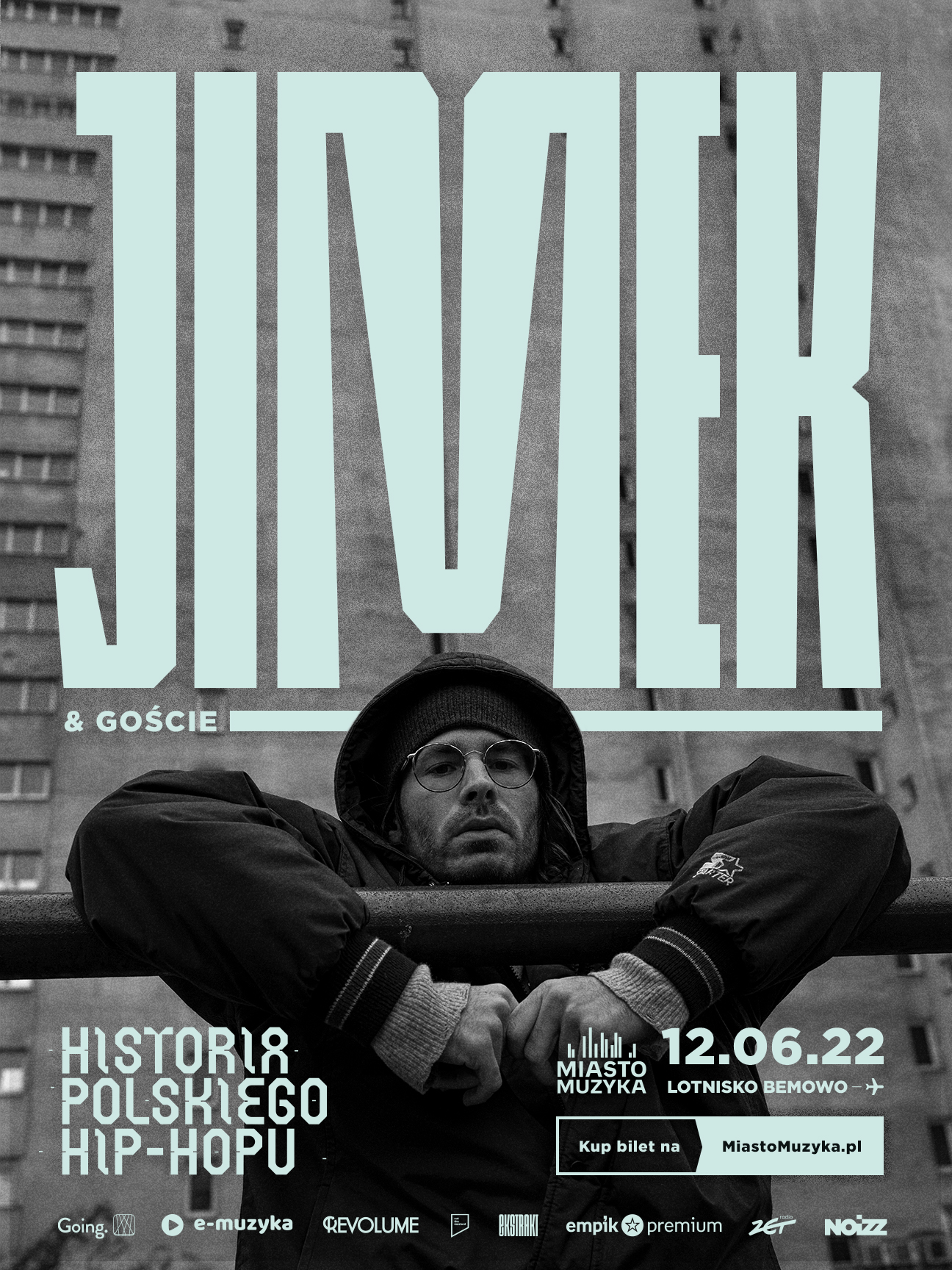 – W naszej koncepcji wyszliśmy od zaprojektowania charakterystycznego znaku artysty, który w założeniu dostosowuje swoją formę w zależności od formatu. W połączeniu z wizualizacją bloku, nawiązującą do stylistyki teledysków hip-hopowych z lat 90., stworzyliśmy wyróżniający się wizualnie plakat, który jest punktem wyjścia dla całej identyfikacji wydarzenia. We współpracy z fotografką londyńskiej sceny muzycznej – Karoliną Wielochą stworzyliśmy alternatywny plakat bazujący na wizerunku Jimka w anturażu blokowiska z lat 90. – mówi Marcin Strzałkowski, CEO Ekstrakt Studio.