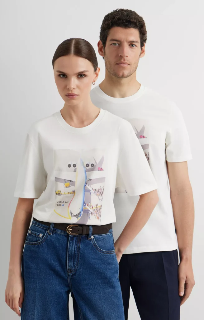 Unikalnym elementem linii są trzy t-shirty z nadrukami kultowych grafik autorstwa Janusza Grabiańskiego. Ten wybitny polski plakacista przez lata kształtował wizerunek Polskich Linii Lotniczych LOT, tworząc projekty będące dziś ikonami światowej estetyki użytkowej. Po raz pierwszy w historii te legendarne grafiki, pełne koloru i lekkości kreski, zostały przeniesione na tkaninę, nadając kolekcji walor kolekcjonerski.