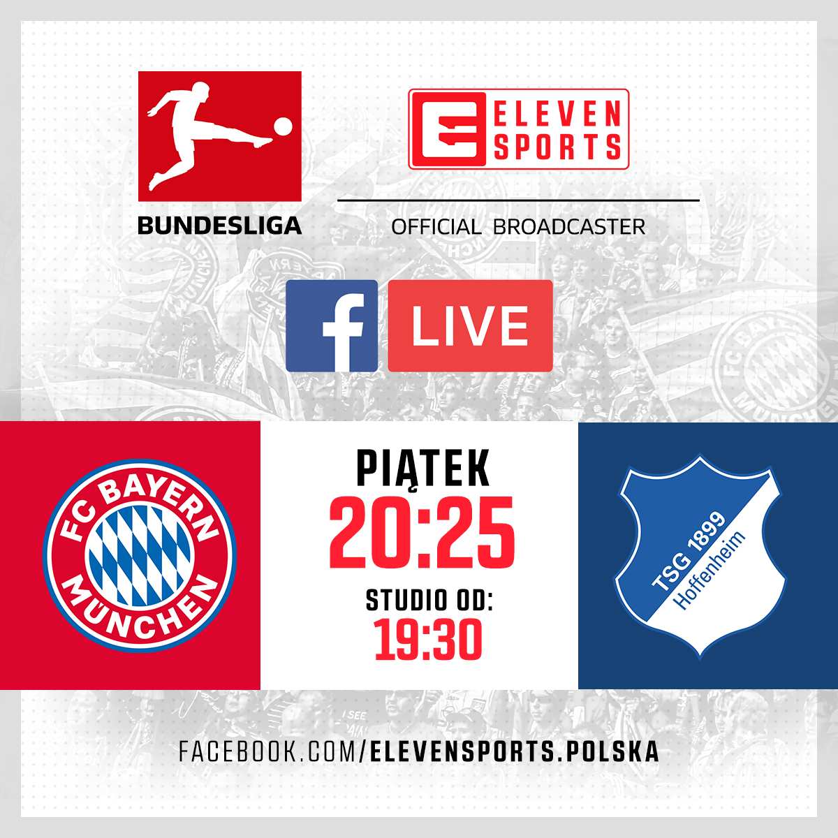 Transmisja na Facebooku rozpocznie się 24 sierpnia o 19:30 wraz ze startem studia przedmeczowego. Zaraz po nim fani polskiego profilu ELEVEN SPORTS będą mogli bezpłatnie obejrzeć spotkanie FC Bayern Monachium – TSG 1899 Hoffenheim. W konfrontacji mistrza Niemiec z trzecią drużyną poprzedniego sezonu widzowie zobaczą m.in. snajperski pojedynek Roberta Lewandowskiego z Andrejem Kramariciem. Mecz prosto z Allianz Arena skomentują Patryk Mirosławski i Tomasz Ćwiąkała. Relację będzie można obejrzeć również w tradycyjnym telewizyjnym przekazie na antenie Eleven Sports 1.
