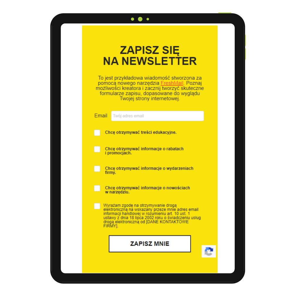 Na przestrzeni lat obserwujemy coraz bardziej minimalistyczne projekty. Na co dzień jesteśmy atakowani mnóstwem informacji i kreacji, dlatego coraz łatwiej jest zmęczyć i rozdrażnić odbiorcę. Projekt szablonu, który stworzysz, będzie miał wpływ na brand experience, a jak już pisałam wyżej, kluczem do sukcesu jest wywołanie dobrych skojarzeń, bo to przełoży się na sprzedaż. Projektując szablon czy formularz zapisu pamiętaj o zasadzie “Keep It Simple, Stupid”. Warto skorzystać z szablonów, dostępnych w narzędziu.