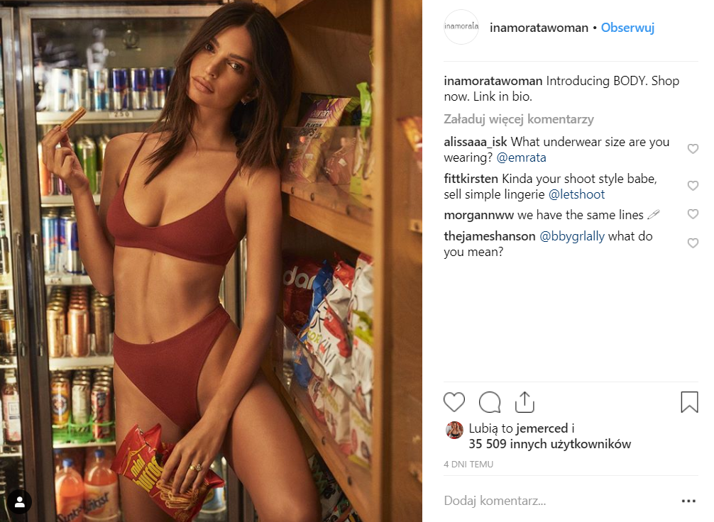Emily Ratajkowski to amerykańska modelka i aktorka, która jakiś czas temu stworzyła własną markę odzieżową Inamorata. Teraz zaprezentowała nową kolekcję zatytułowaną BODY, do której sesja zdjęciowa została zrealizowana w sklepie spożywczym.