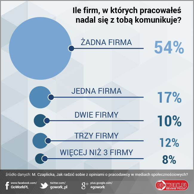 Dzięki “sieci” można budować wizerunek marki pracodawcy w sposób kompleksowy, przy stosunkowo niewielkim nakładzie sił i środków. Warto między innymi stworzyć profil pracodawcy na podstawie wątków opiniowych z serwisu GoWork.pl. W ten sposób marka dociera nie tylko do potencjalnych kandydatów, ale również do byłych pracowników. To właśnie ich zdanie chcą poznać osoby zainteresowane zatrudnieniem w danym przedsiębiorstwie. Choć większość firm wciąż nie zdaje sobie z tego sprawy, to warto zadbać o komunikację z byłymi pracownikami.