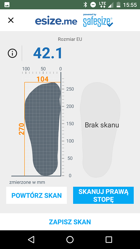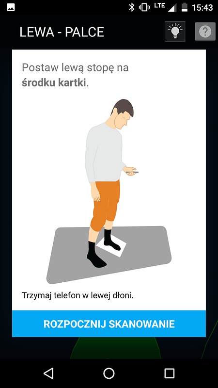 Skan aplikacją jest bardzo prosty do wykonania. Potrzebujemy do tego smartfonu z systemem Android oraz białej kartki A4. Jak to wygląda w praktyce? Na równym, stabilnym podłożu kładziemy białą kartkę A4. Na środku stawiamy stopę (najlepiej w jednolitej, bawełnianej skarpetce) i robimy dwa zdjęcia. Pierwsze od góry, tak by w kadrze znalazła się stopa oraz cztery rogi kartki. Drugie wykonujemy pod kątem, od strony pięty: by zawrzeć na zdjęciu piętę oraz któryś z przeciwległych rogów kartki. Aplikacja oczywiście prowadzi użytkownika krok po kroku przez proces wykonywania zdjęć. W efekcie ich wykonania system otrzymuje obraz naszej stopy.