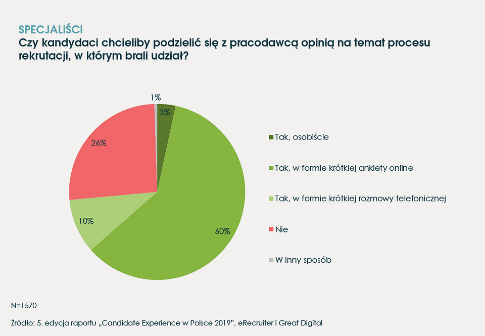Świadomość firm co do znaczenia candidate experience nie oznacza, że podejmują one w tym kierunku konkretne działania, analogiczne do tych podejmowanych np. w sprzedaży czy marketingu. Według raportu „Candidate Experience” opinie kandydatów o rekrutacji przynajmniej raz w roku bada tylko 16% pracodawców. Dzieje się tak mimo tego, że sami rekrutowani chętnie dzielą się swoimi opiniami z rekruterami. Skłonnych jest to zrobić aż 3 na 4 badanych specjalistów.