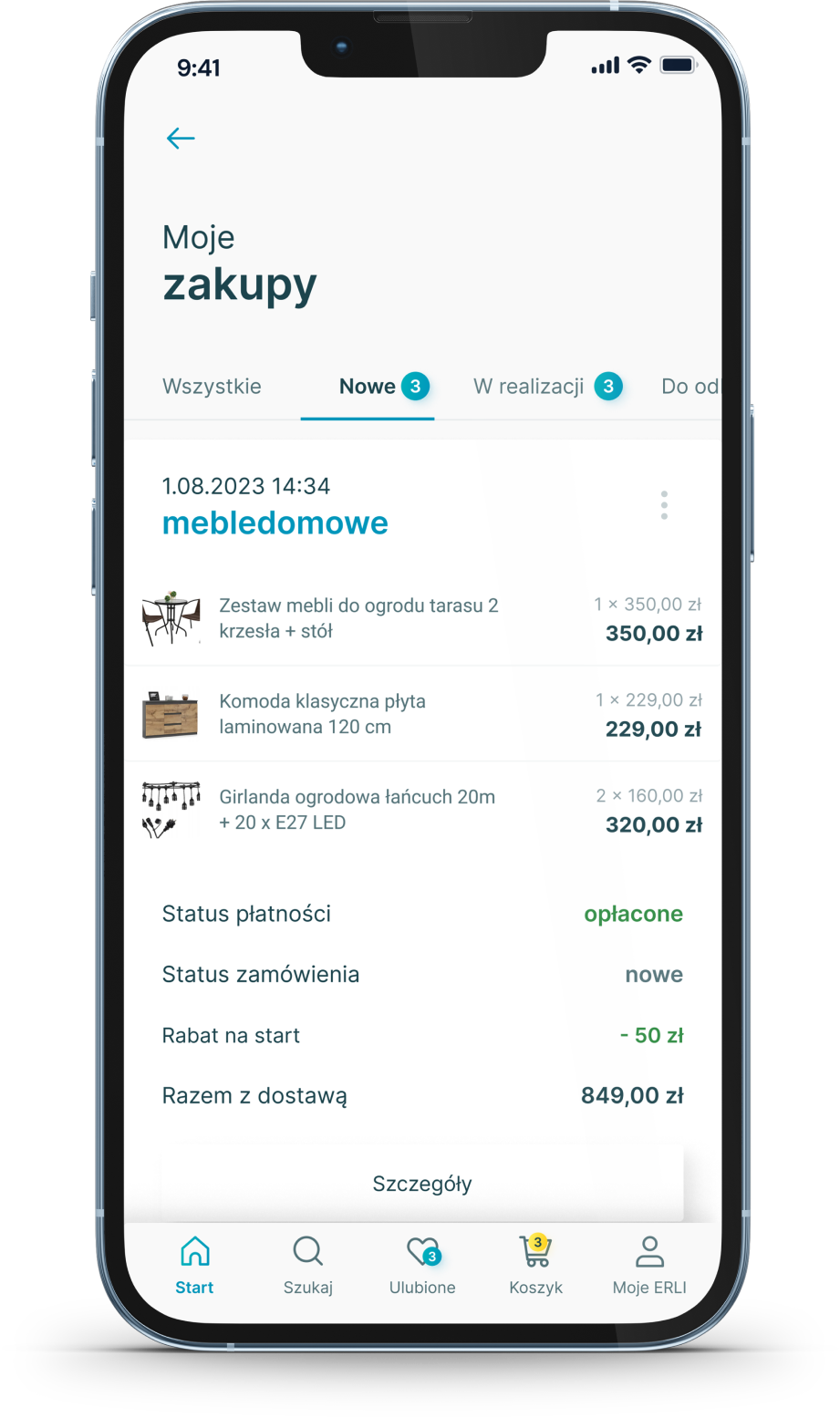 Aplikacja ERLI jest dostępna w sklepach Google Play oraz App Store, a więcej informacji o aplikacji można znaleźć na stronie: https://erli.pl/aplikacja