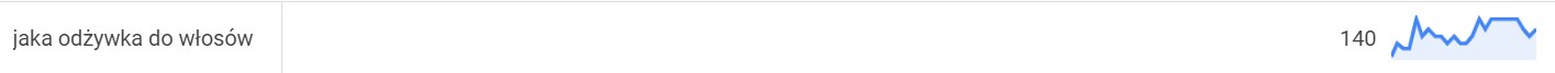 Nawet najciekawszy artykuł nie przyniesie ruchu organicznego, jeśli nie będzie dobrze rankować. Evergreen content musi więc być zoptymalizowany pod SEO i uwzględniać m.in. odpowiednie frazy kluczowe. Jakie wybierać? Z pewnością warto skupić się na słowach z pozytywnym trendem. Są to te keywordsy, które są popularne na przestrzeni kilkunastu-kilkudziesięciu miesięcy. Takim przykładem jest fraza „jaka odżywka do włosów”: