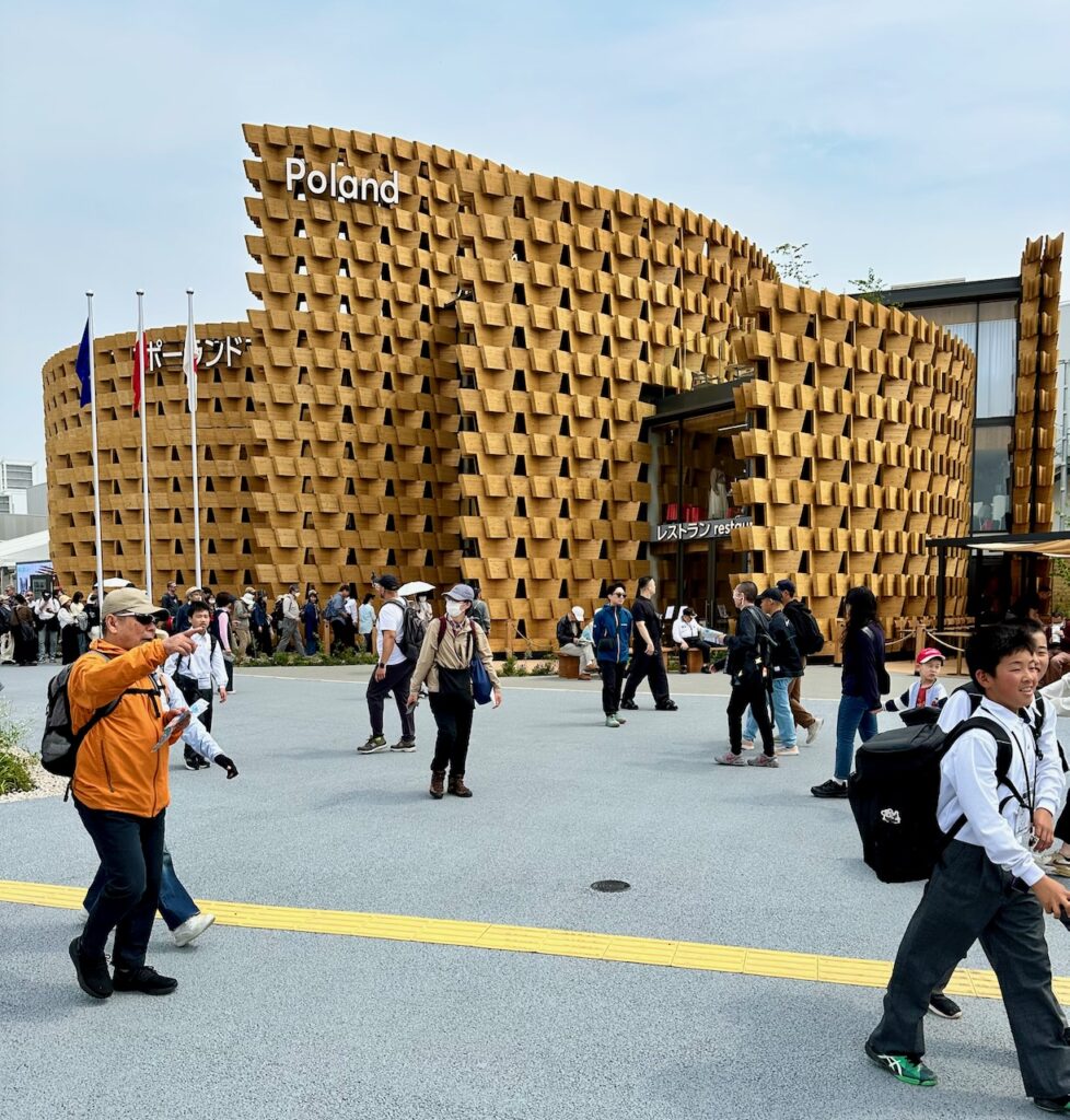 Był też pawilon Polski. Jak zwykle na poziomie, ale też nie do zapamiętania na tle feerii propozycji innych pawilonów. Trochę etnograficzny trochę konceptualny. Były zioła i polskie krajobrazy (generowane przez AI, a jak!), ale też koncerty Chopina, Aura – intrygująca instalacja artystyczna i dużo, dużo drewna. Elewacja pawilonu nawiązywała do wspólnych elementów polskiej i japońskiej tradycji rzemieślniczej i została wykonana z drewna technice kigumi (tradycyjna japońska metoda łączenia drewna). W założeniu pawilon stanowił manifest nowoczesnej Polski, łącząc estetykę z etyką i narracją o genie kreatywności. Wystawa miała bogatą, wielowymiarową symbolikę – do tego stopnia, że zrozumienie niektórych jej elementów było dosyć trudne bez przewodnika. O wielu elementach ekspozycji dowiedziałem się dopiero po wizycie w pawilonie, studiując różne opracowania i materiały do tego artykułu. Ciekawi mnie co z tego zapamiętał przeciętny odwiedzający, a więc w praktyce, Japończyk.