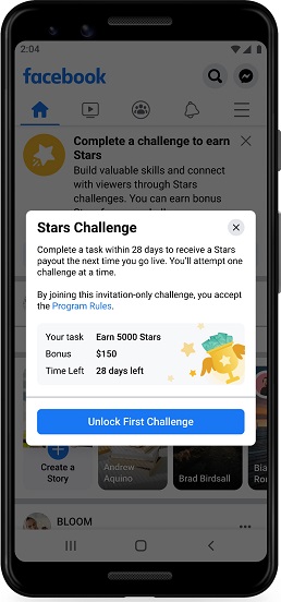 - bonus za gwiazdki dla twórców wideo i gamingowych za osiągnięcie określonego poziomu przychodów dzięki gwiazdkom Facebooka.