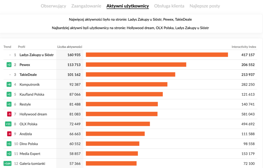 W kategorii Handel szczególnie wyróżniła się Galeria Łomianki. Centrum handlowe awansowało w rankingu aktywności aż o 164 pozycje, zajmując 12. miejsce. Kluczową rolę odegrał pojedynczy post z wyraźnym przekazem społecznym.
