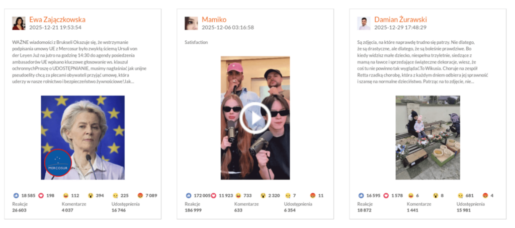 Grudniowe dane pokazują, że proste formaty oparte na emocjach, muzyce, sezonowości oraz realnym zaangażowaniu społecznym pozostają jednym z najskuteczniejszych sposobów budowania interakcji na Facebooku. Pełne zestawienie danych dostępne jest w raporcie Facebook Trends grudzień 2025.