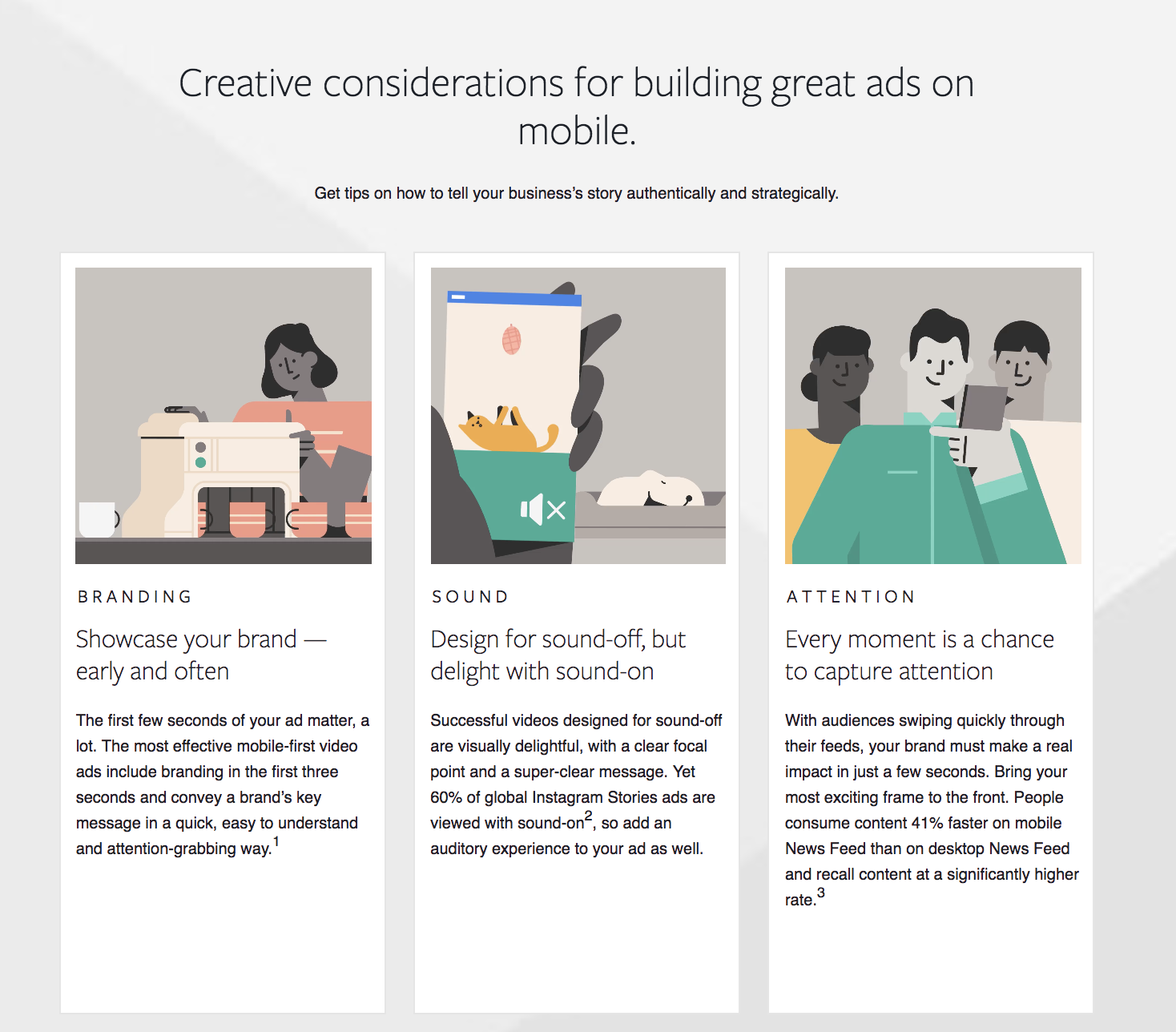 Strona zawiera również rekomendacje odnośnie brandingu, formatu i długości reklamy, a także daje dostęp do takich zasobów jak Mobile Studio, Creative Hub oraz Ads Guide.