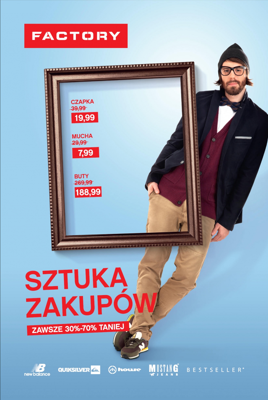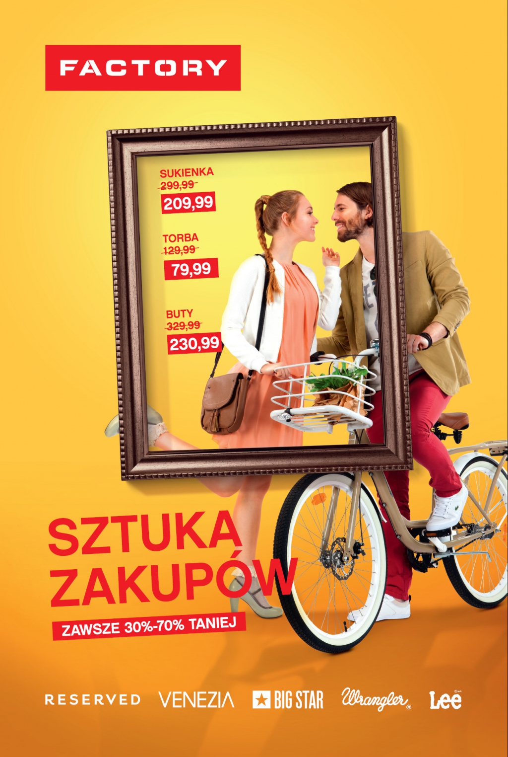 Bohaterami wiosennych kreacji reklamowych Sztuki Zakupów są współcześni ludzie, reprezentujący różne grupy społeczne, zainteresowania czy preferencje modowe – ceniący sportową wygodę, wieczorową elegancję czy codzienny, oryginalny styl. Bliscy niemal każdej z grup obecnych i przyszłych klientów FACTORY.