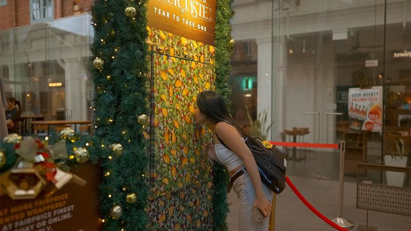 Przed sklepem spożywczym Clarke Quay należącym do sieci FairPrice Group pojawiły się nietypowe billboardy. Każdy z nich został stworzony przy użyciu pachnącego papieru do pakowania upominków. Zapachy nie są przypadkowe – nawiązują bowiem do ulubionych bożonarodzeniowych potraw, jakich jak ciasta wiśniowego, gwiazdkowej sałatki czy czekolady z malinami. Sklep zachęca przechodniów i klientów do odrywania fragmentów papieru, aby w ten sposób poczuć magię nadchodzących świąt.