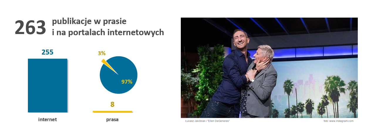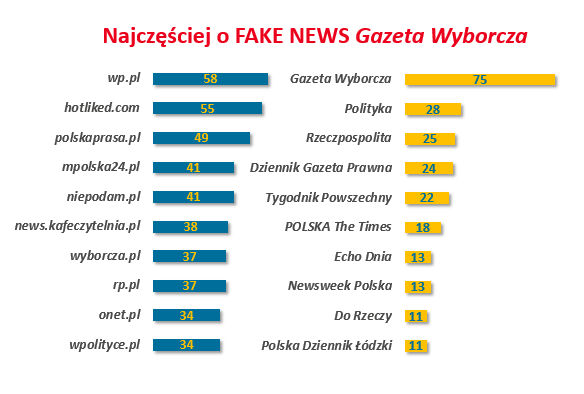 Natomiast fraza „fake news” najczęściej pojawiała się w prasie się w kontekście akcji Łukasza Jakóbiaka, który ogłosił całej Polsce, że został zaproszony do programu Ellen de Generes oraz przy okazji niedawnej reklamy Reserved. Bardzo dużo informacji dotyczyło charakterystyki zjawiska jakim jest „fake news”, decyzji Facebooka dotyczącej ograniczenia nieprawdziwych informacji oraz osób, które takie fałszywe wiadomości produkują: