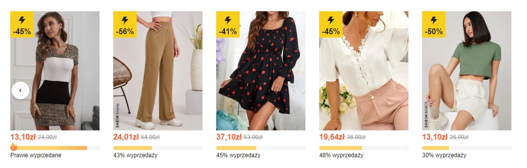 Shein kusi użytkowników szalenie szeroką ofertą w śmiesznie niskich cenach. Mimo że na rynku mnożą się e-sklepy z przystępnymi cenowo produktami, chiński gigant odzieżowy oferuje ubrania w szerokiej gamie rozmiarów, których ceny rzadko przekraczają 60 zł, a wśród specjalnych ofert można znaleźć nawet ubrania za 10 zł. Do tego dochodzi oczywiście darmowa dostawa i możliwość zwrotu całego kartonu ubrań.
