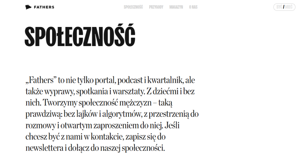 W nowej odsłonie projekt stawia na digital jako punkt wyjścia i stopniową rozbudowę ekosystemu medialnego. W serwisie udostępniono archiwalne teksty z magazynu, a całość została zaprojektowana jako nowoczesna platforma contentowa skupiona wokół tematu świadomego ojcostwa.