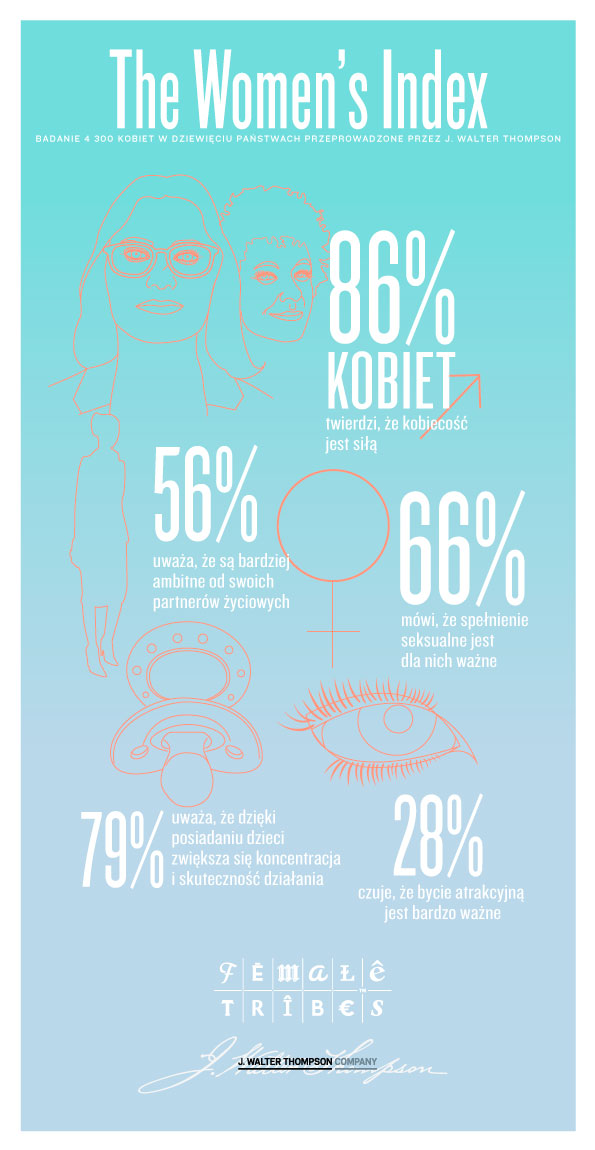 „Badanie Women’s Index, czyli analiza współczesnych kobiecych plemion Female Tribes pomaga nam lepiej zrozumieć, jakie zmiany czekają nas w najbliższym czasie w kontekście roli płci we współczesnym świecie, a co za tym idzie zmiany sposobu komunikacji wartości marek. To wzmacnia zdecydowanie pozycjonowanie naszej agencji, jako eksperta w grupie docelowej kobiet. Mamy wiele marek kobiecych, które prowadzimy z sukcesami, ale to badanie wprowadza zupełnie nowe światło na kwestię płci. Powoli zaczynają dominować nowe wartości jak intuicja, empatia czy rozsądek. Kobiety coraz częściej podejmują kluczowe decyzje wokół nas, co zmienia siłę tych wartości, na których budujemy przekaz. Globalny wgląd w profil nowoczesnych kobiet pozwala nam oferować znacznie lepsze doradztwo czy pionierskie usługi, co z kolei pomaga firmom i markom lepiej służyć największej grupie konsumentów na całym świecie, jakim są kobiety.” – mówi Maciej Obuchowicz, Director of Strategic Planning w grupie J. Walter Thompson.