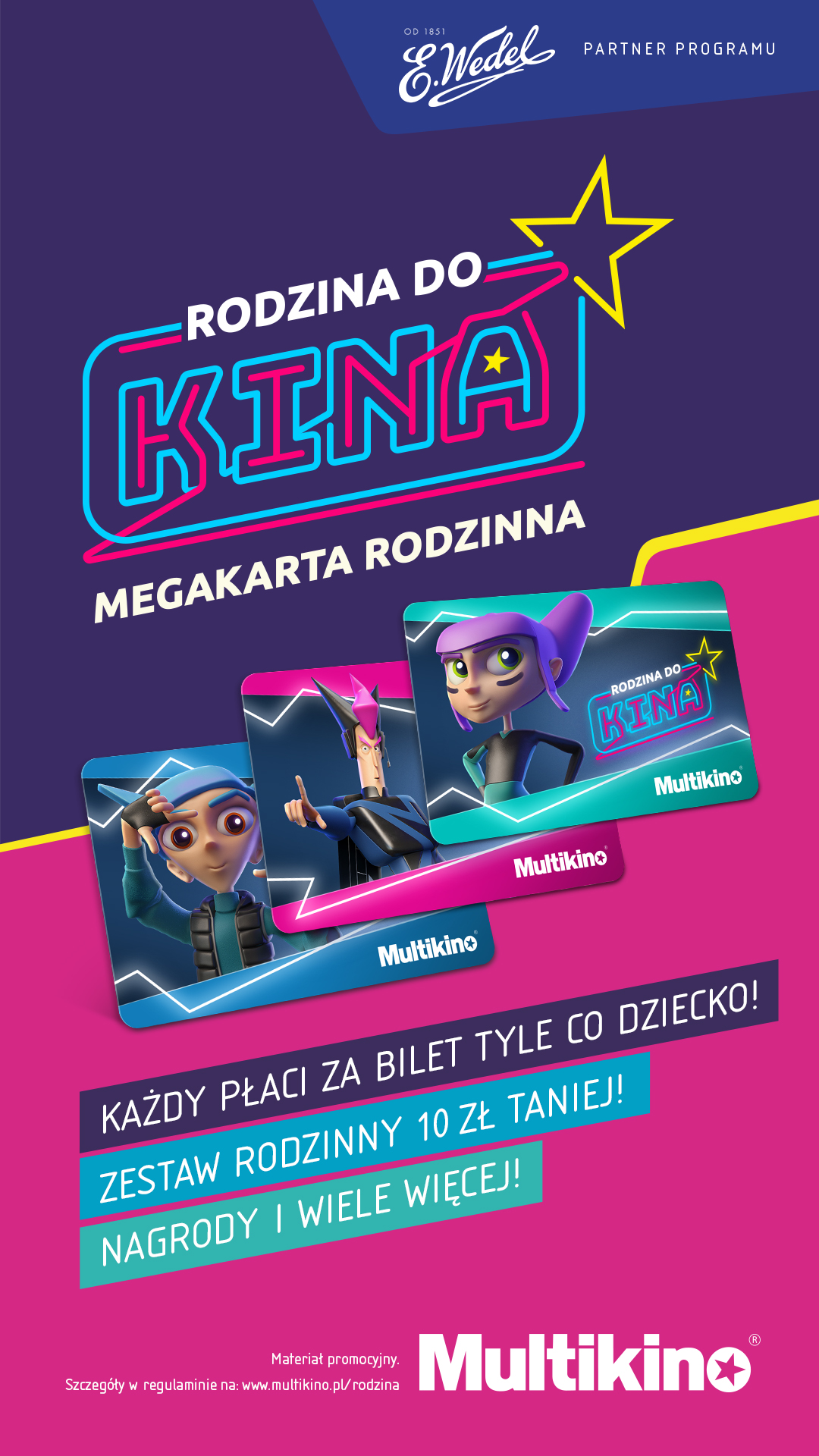 Najnowsza oferta Multikina dedykowana rodzinom Rodzina do Kina gwarantuje tańsze bilety, zestawy barowe i gadżety filmowe w promocyjnych cenach, a do tego program lojalnościowy. Dzięki niej wyjście do kina w rodzinnym gronie stanie się jeszcze bardziej atrakcyjne i opłacalne. Więcej informacji na temat samej akcji znajduje się na stronie.