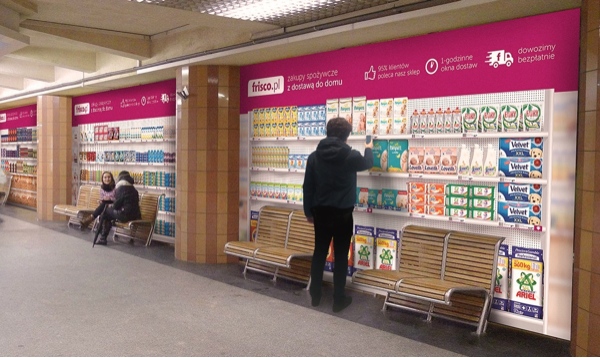 Klienci mogą zamówić wybrane towary z wirtualnego supermarketu w metrze za pomocą smartfona, a Frisco dostarczy je pod wskazany adres o wyznaczonej przez nich godzinie. Otwarciu nowego e-sklepu towarzyszy kampania marketingowa, w ramach której m.in. przy stacji Metro Centrum rozdawane będą owoce z logo Frisco.pl.