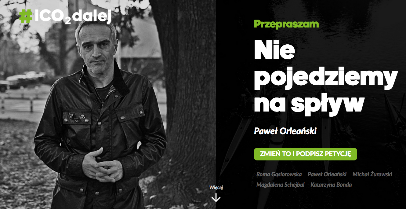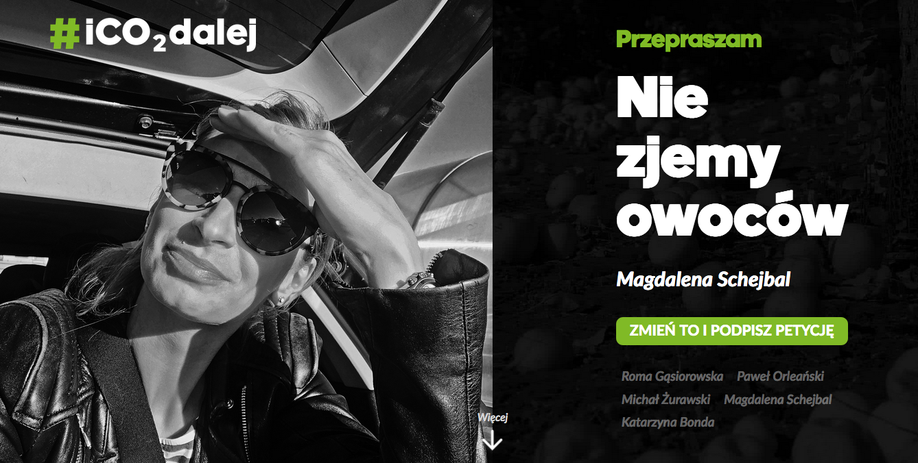 Na stronie kampanii, www.iCO2dalej.pl, każdy może podpisać się pod petycją o ograniczenie destrukcyjnego wpływu na klimat przez Elektrownię Bełchatów i zobaczyć jak m.in. aktorzy Roma Gąsiorowska i Michał Żurawski, reżyser filmowy Maciej Pieprzyca, czy muzycy z zespołu Bokka przepraszają za to, że nie interesowali się problemem i dotychczas nie próbowali powstrzymać zmiany klimatu. Zwracają uwagę, że z powodu anomalii klimatycznych w lasach występuje plaga kleszczy, rzeki zaczynają powoli wysychać, zagrożone są drzewa i krzewy owocowe, a zimą jest coraz mniej śniegu. Niebawem Półwysep Helski będzie częściowo zalany. To jest świat, który zostawiamy naszym dzieciom i wnukom.
