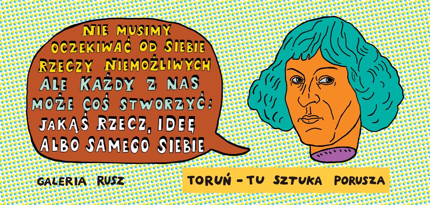 Galeria Rusz zainspirowana dokonaniami genialnego torunianina namawia do przewrotu kopernikańskiego… w myśleniu. Namawia do poszukiwania nowatorskich idei i rozwiązań, które pomogą nam spojrzeć na świat w nowy sposób, dostrzec jego bezcenność oraz zadbać o jego przyszłość i przetrwanie – dla dobra nas samych i pokoleń, które przyjdą po nas.