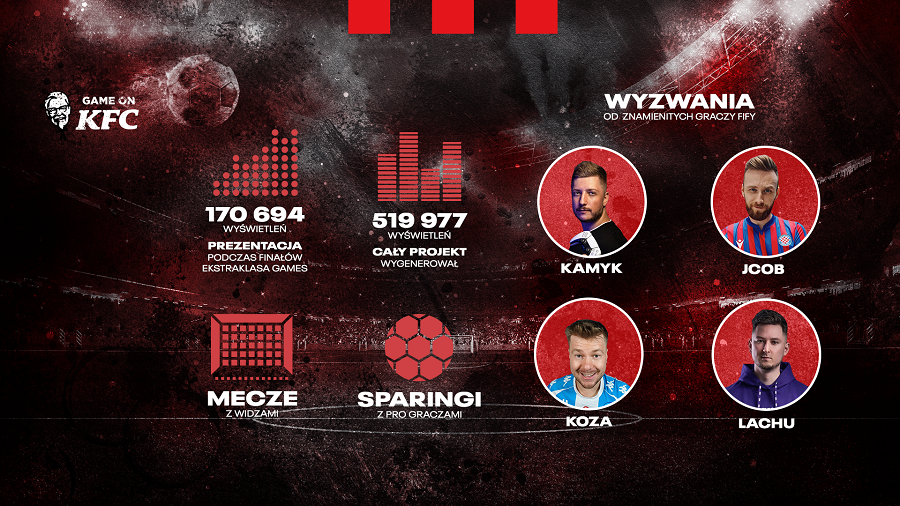 W tym roku KFC, realizując swoje cele, podjęło się zrobienia czegoś więcej niż tradycyjne akcje sponsoringowe, i wspólnie z agencją WE!RE Fantasy podało rękę do graczy jednej z najpopularniejszych gier w Polsce i na świecie, czyli FIFA. Kampania powstała przy współpracy z agencją Golden Coil.