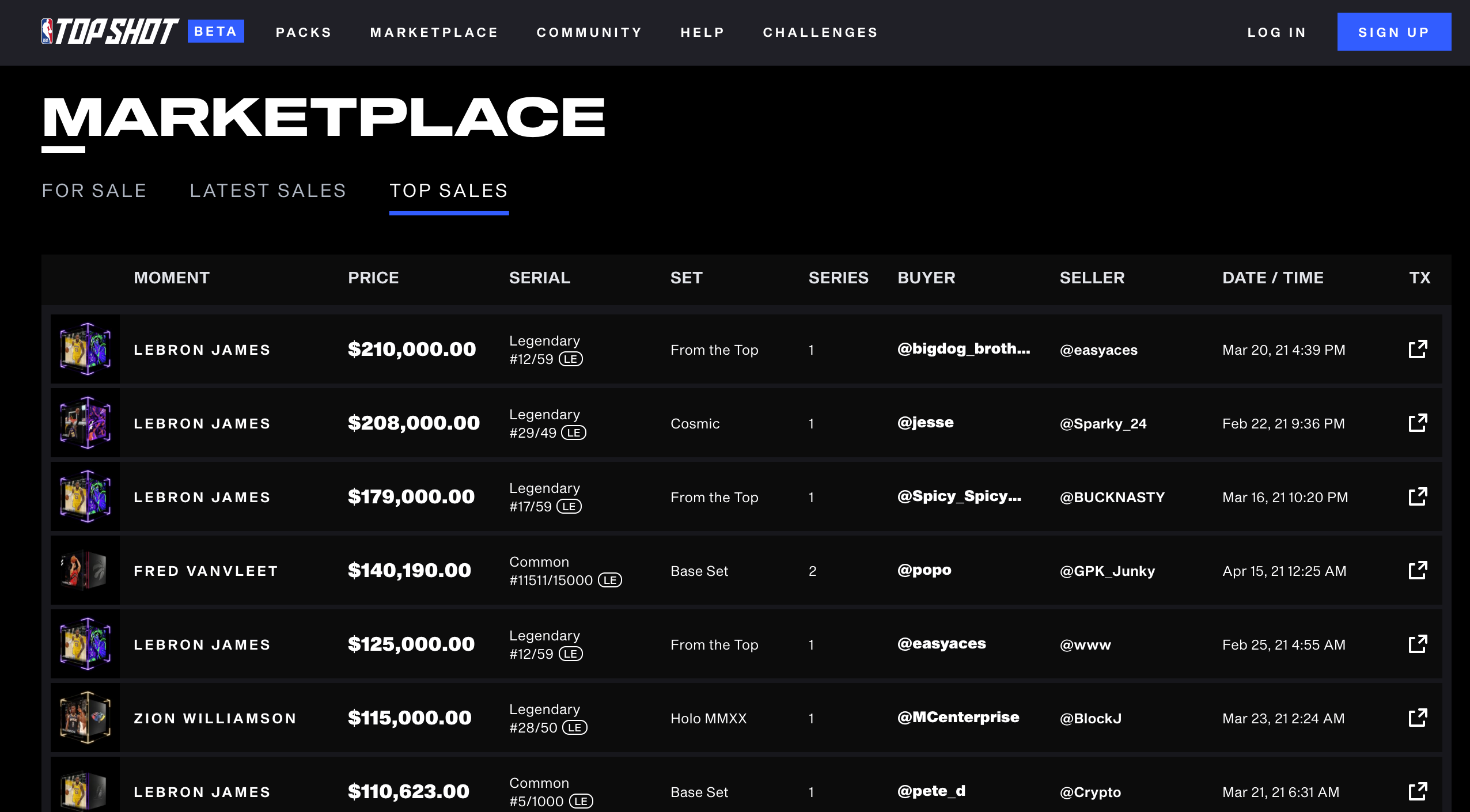 Najlepiej sprzedające się karty z serii NBA TopShot (Source: nbatopshot.com/ // Dapper Labs Inc. // 2021 NBA Properties, Inc.)
