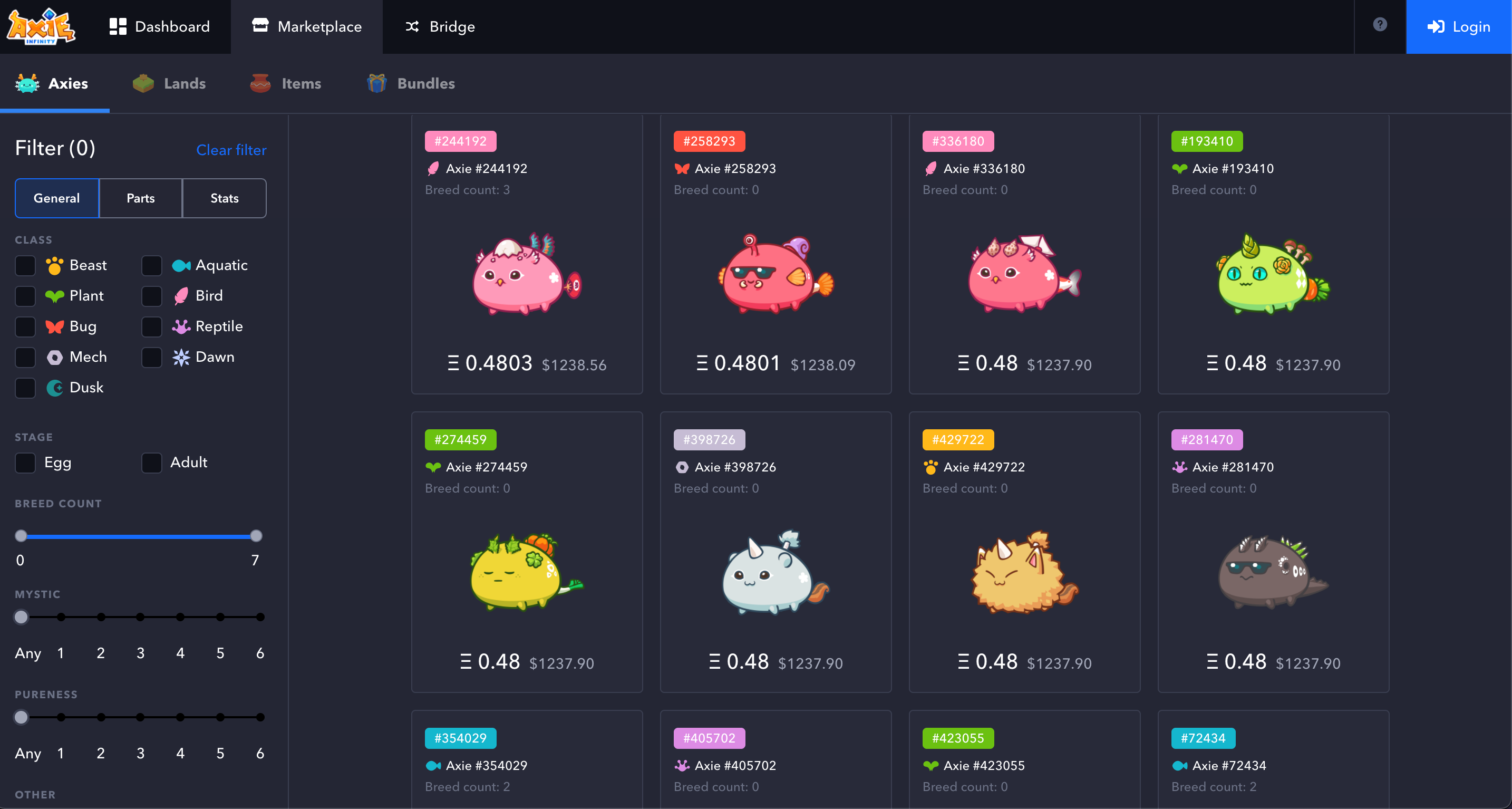 Marketplace Axie infinity (Source: marketplace.axieinfinity.com/)