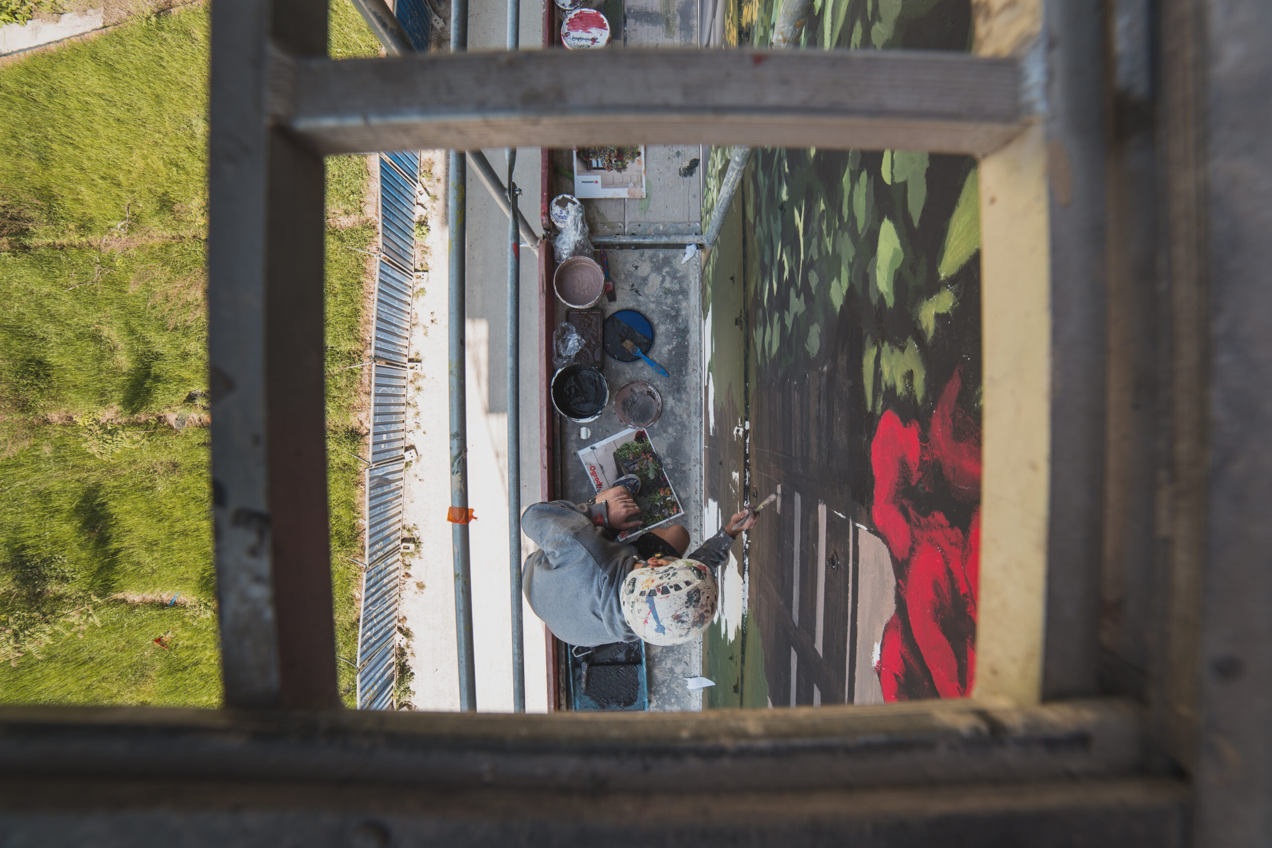 Malowanie obu ścian zajęło 6 dni i brało w nim udział 9 artystów z Good Looking Studio.