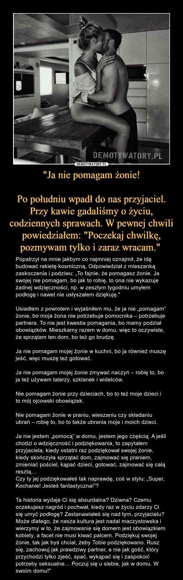 Na szczęście w sieci pojawia się trochę głosów za tym, jak definiować dzisiaj co jest cool u faceta i co to znaczy być partnerem. Zapewne ruchy społeczne i psychologiczne też włączą się mocniej do dyskursu, bo to jest teraz ewidentnie potrzebne. W 2017 roku popularny był taki mem, nieznanego autorstwa, ale chętnie go tutaj pokażę, bo myślę, że idealnie pasuje do tworzącej się roli mężczyzny.