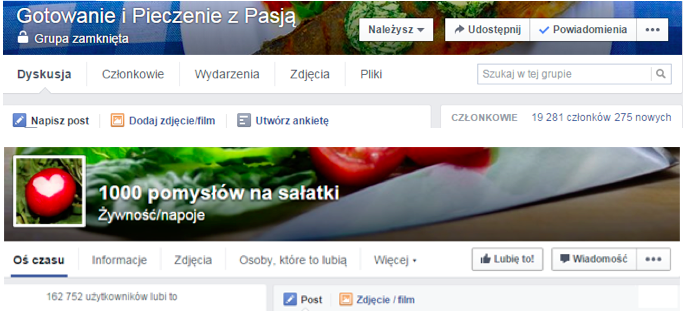 Agregatory kulinarne występują również na Facebooku, jako grupy tematyczne oraz fanpage. Dzięki nim możemy bez wychodzenia ze społecznościówki przechwycić pomysł na każdy posiłek w ciągu dnia. To ukazuje również ogromną siłę tego medium, ponieważ z każdą aktualizacją Zuckerberg robi wszystko, abyśmy nie musieli wychodzić z serwisu – to nie Facebook jest w Internecie, a Internet jest w Facebooku.