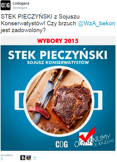 W trakcie wyborów parlamentarnych podpięli się pod temat tworząc akcję real time marketingową, polegającą na wyborze najlepszego przepisu.