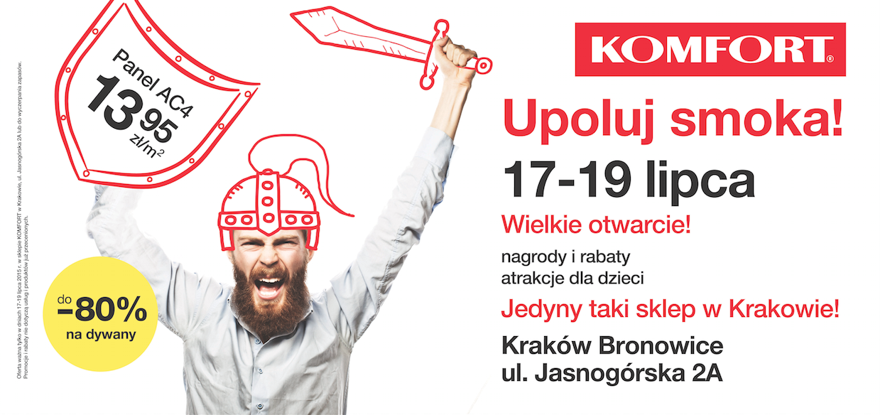 „Gdzie jest smok?” – billboardy z tym pytaniem pojawiły się na ulicach Krakowa pod koniec czerwca. Był to teaser kampanii reklamowej sieci Komfort, która 17 lipca br. otworzyła w mieście nowy sklep.