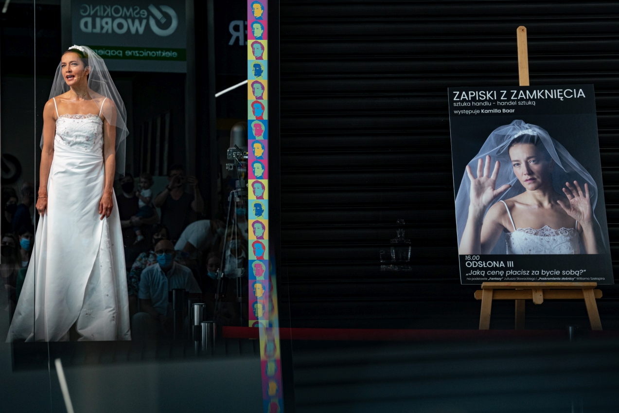 Głośny był też finał przedsięwzięcia. Wspólnie z Teatrem Małym w Tychach Gemini Park zorganizował performance Kamili Baar. „Zapiski z zamknięcia/ sztuka handlu-handel sztuką” z Kamillą Baar były pierwszym w Polsce artystycznym i teatralnym komentarzem do pandemicznych czasów, a także pierwszym w Polsce performance, który rozegrał się w sklepowej witrynie, która jednocześnie stała się sceną.