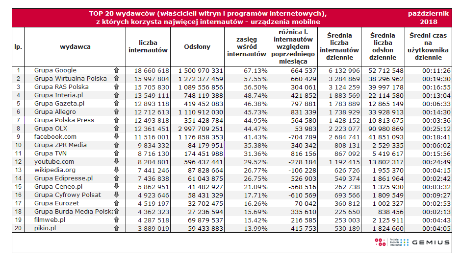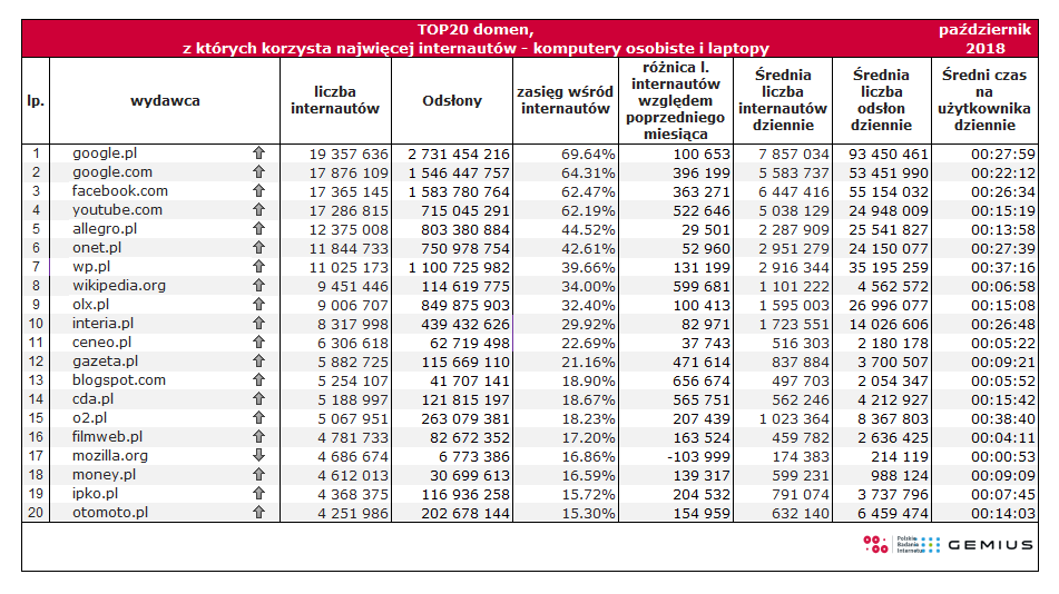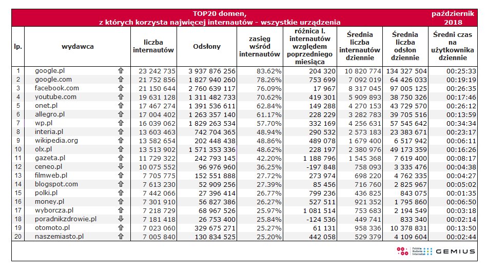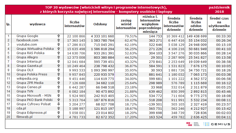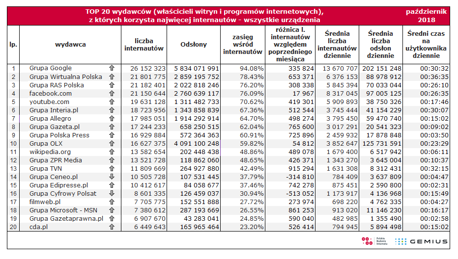 Liczebność próby: N= 164422. Grupa objęta badaniem 7-75 lat. Do badania wykorzystano dane o strukturze internautów pochodzące z badania NetTrack Kantar MillwardBrown z I kwartału 2018r. i badania Maluchy z 2016r.