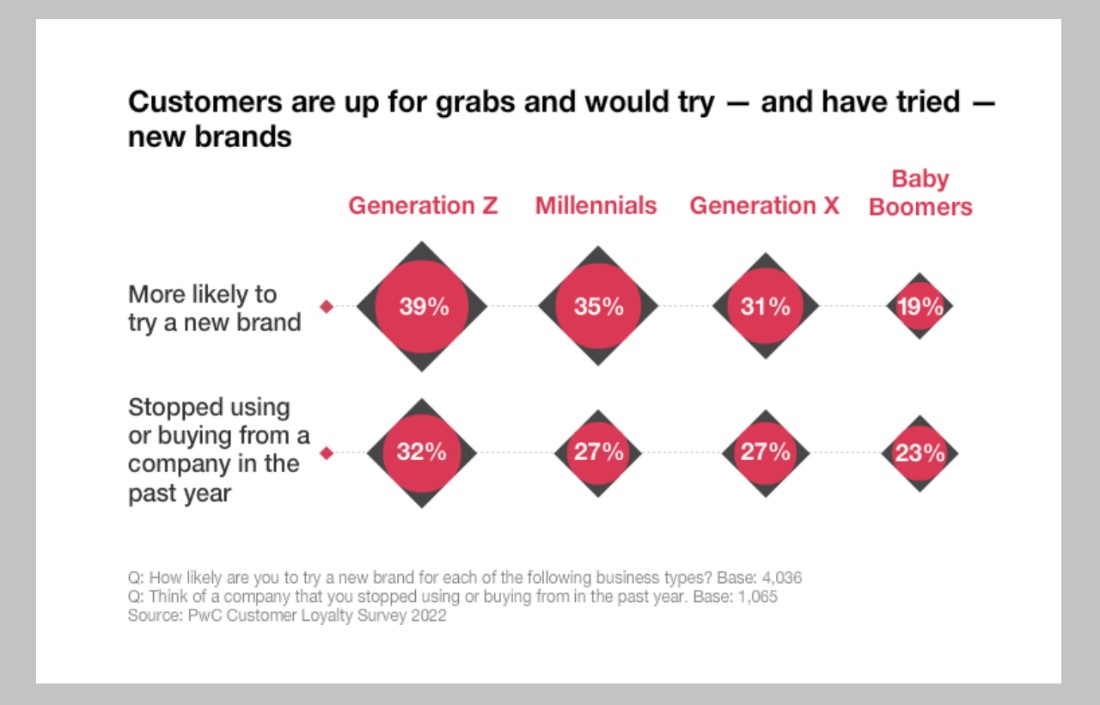 Walka o lojalność młodego pokolenia zdecydowanie nie jest prostym wyzwaniem. W postpandemicznej erze sporo „Zetek” częściej rezygnuje z lubianych marek – aż 60% Gen Zet stwierdziło, że przestało być lojalne ulubionym brandom od początku pandemii. Z kolei według badania PwC Customer Loyalty Survey 2022 aż 39% „Zetek” jest ciekawych próbowania nowości i poszukiwania nowych doświadczeń.