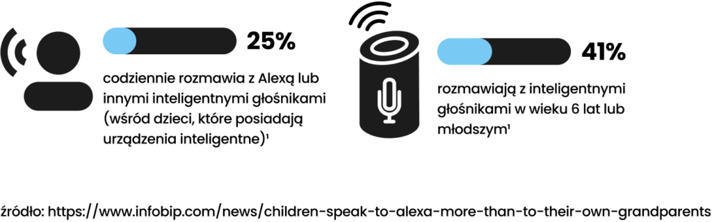 W 2013 roku Amazon wprowadził Alexe, a Siri i Google Voice w tym czasie stawały się coraz bardziej popularne. Wskazuje się, iż 41% z przedstawicieli generacji Alpha porozumiewa się z inteligentnymi głośnikami, a 25% rozmawia codziennie z Alexą. Musimy zrozumieć, iż generacja Alpha wyszukuje informacje zupełnie niż my, oraz że dokonuje zakupów w inny sposób.